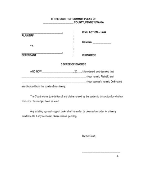 Pennsylvania Divorce Decree Sample Fill Online, Printable Form